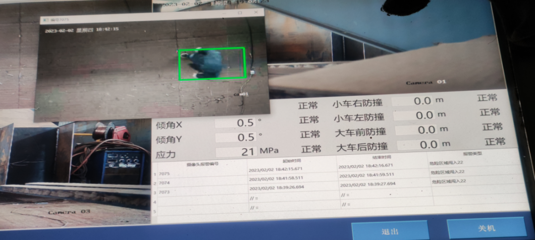 2、通過現場反復測試及算法調整,現場實現了按客戶要求吊鉤行走作業(yè)過程下方流動危險區(qū)域人員入侵準確識別報警。