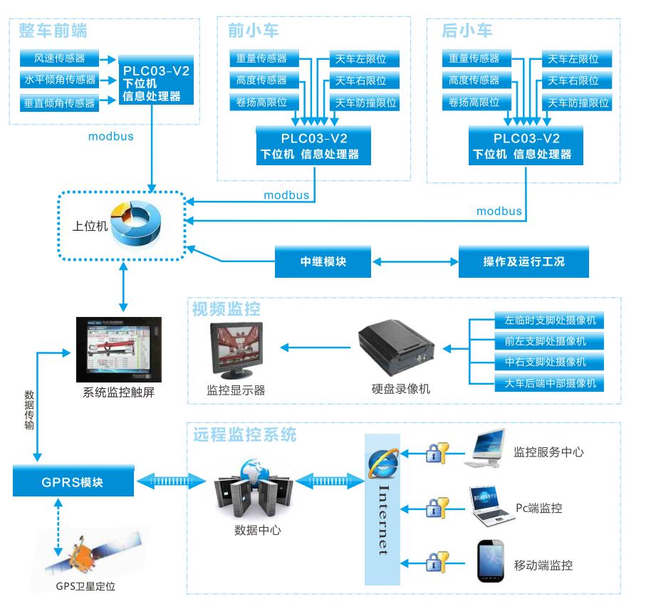 此次設(shè)備配套了數(shù)據(jù)監(jiān)控和視頻監(jiān)控,視頻監(jiān)控布置在吊機各個安全隱患較大的位置,并在司機室安裝了帶有語音對講功能的半球機。