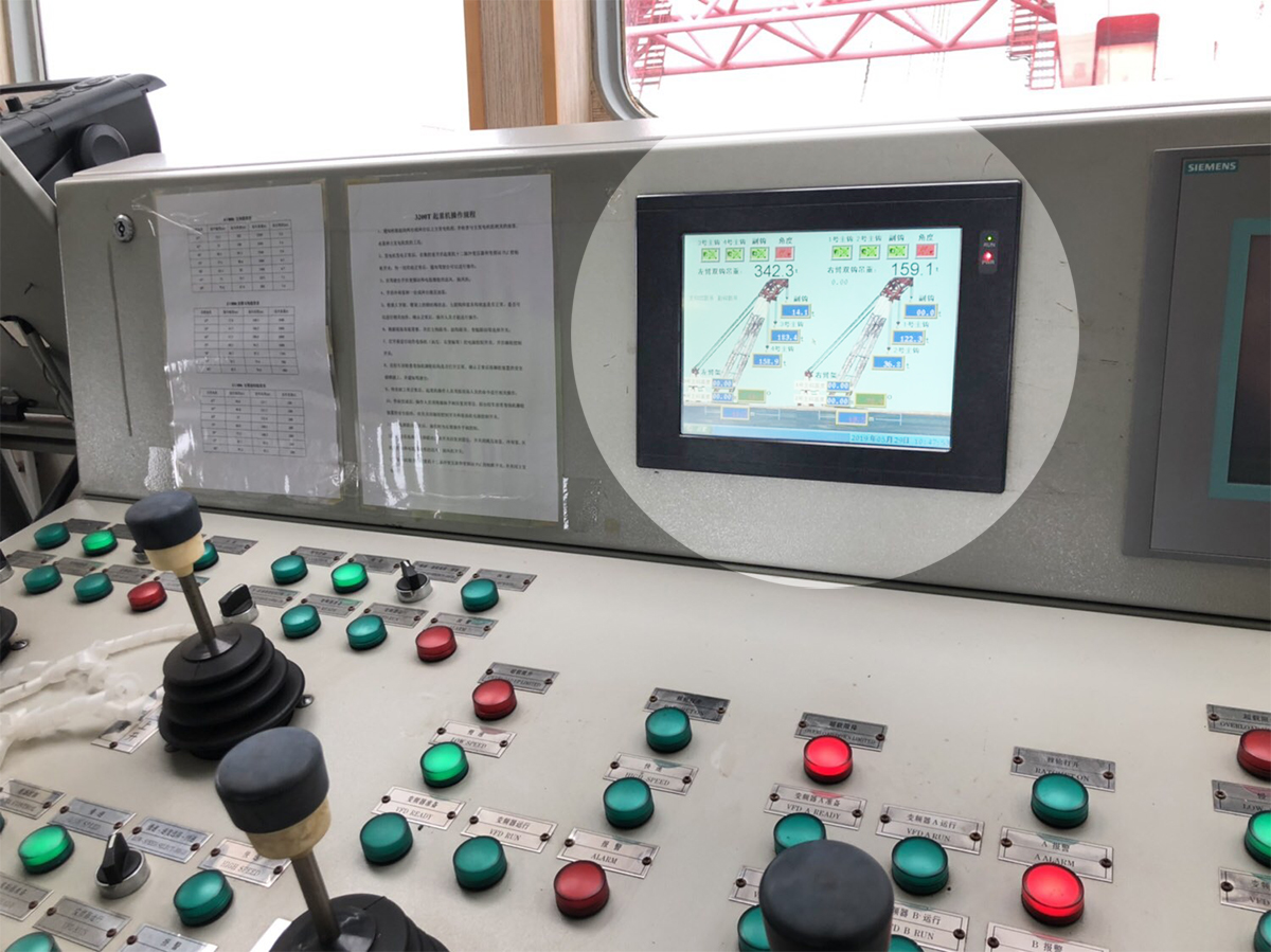 ▲安裝于長大海升號(hào)控制室的微特起重機(jī)力矩限制器系統(tǒng)