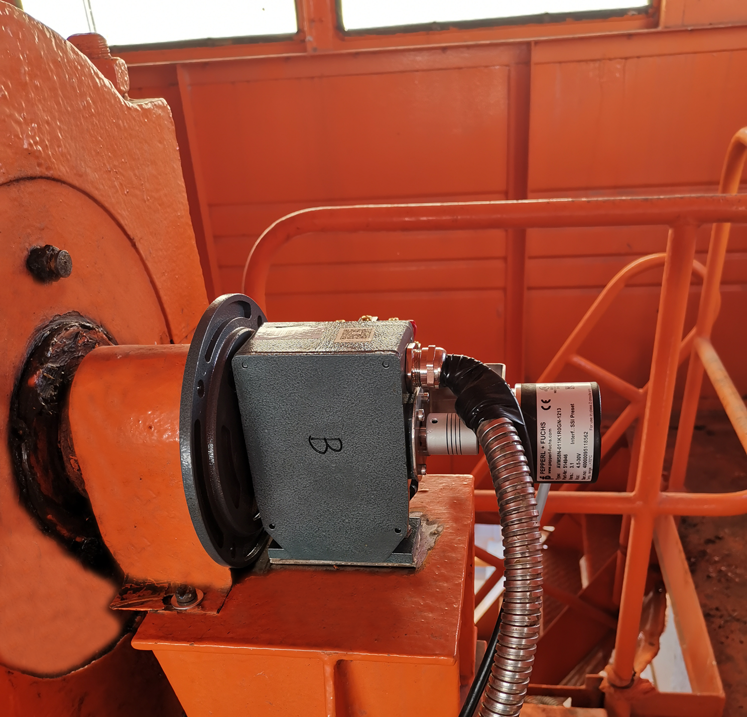 機(jī)械旋轉(zhuǎn)限位開(kāi)關(guān)通過(guò)旋轉(zhuǎn)機(jī)構(gòu)機(jī)械式控制吊鉤的上下極限,旋轉(zhuǎn)限位開(kāi)關(guān)量信號(hào)給下位機(jī)電路板通過(guò)程序顯示吊鉤的限位狀態(tài),編碼器信號(hào)輸入到小車下位機(jī)控制箱,下位機(jī)將采集到的數(shù)據(jù)通訊給司機(jī)室下位機(jī),下位機(jī)再通訊到工控機(jī),顯示器顯示數(shù)據(jù),司機(jī)室下位機(jī)控制輸出。