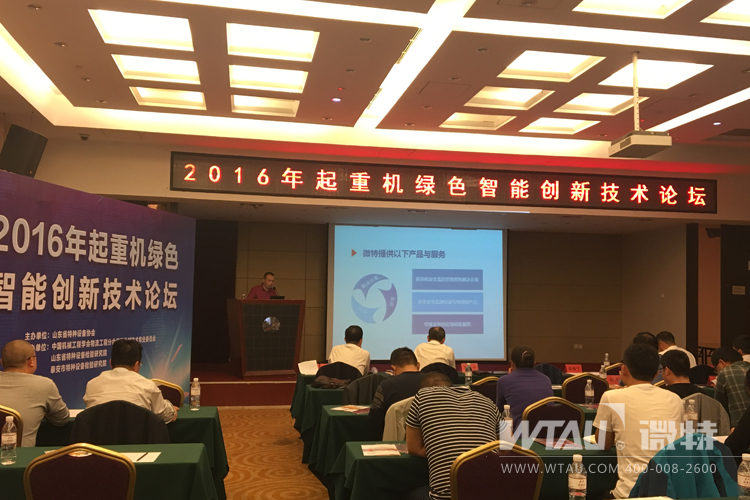 2016年起重機綠色智能創(chuàng)新技術(shù)論壇于10月19日-22日在山東省泰安市舉辦。本次論壇的主題為“綠色,智能,創(chuàng)新”。由山東省特種設(shè)備協(xié)會聯(lián)合中國機械工程學(xué)會物流工程分會起重機械技術(shù)專業(yè)委員會、山東省特種設(shè)備檢驗研究院、泰安市特種設(shè)備檢驗研究院共同主辦。受主辦方邀請,微特電子在會上作了“起重機安全智能監(jiān)控系統(tǒng)”的主題演講。