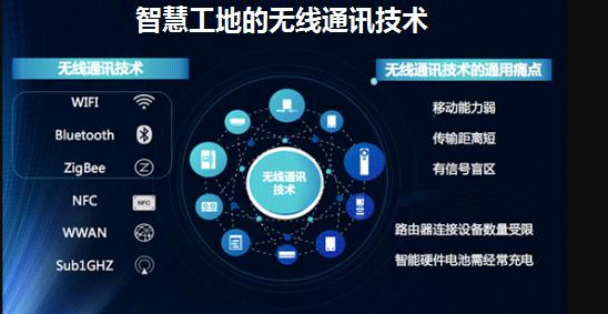 隨著智慧工地時代的來臨,預計未來全球物聯(lián)網(wǎng)連接數(shù)將是千億級,但Wi-Fi、藍牙、ZigBee等通訊技術(shù)并不滿足智慧工地的發(fā)展需求,無線通訊技術(shù)仍然存在移動能力弱、傳輸距離短、有信號盲區(qū)、智能設備聯(lián)網(wǎng)困難等痛點,導致應用場景也受限于物聯(lián)網(wǎng)終端的成本和功耗等問題,智慧工地的普及受到阻礙。