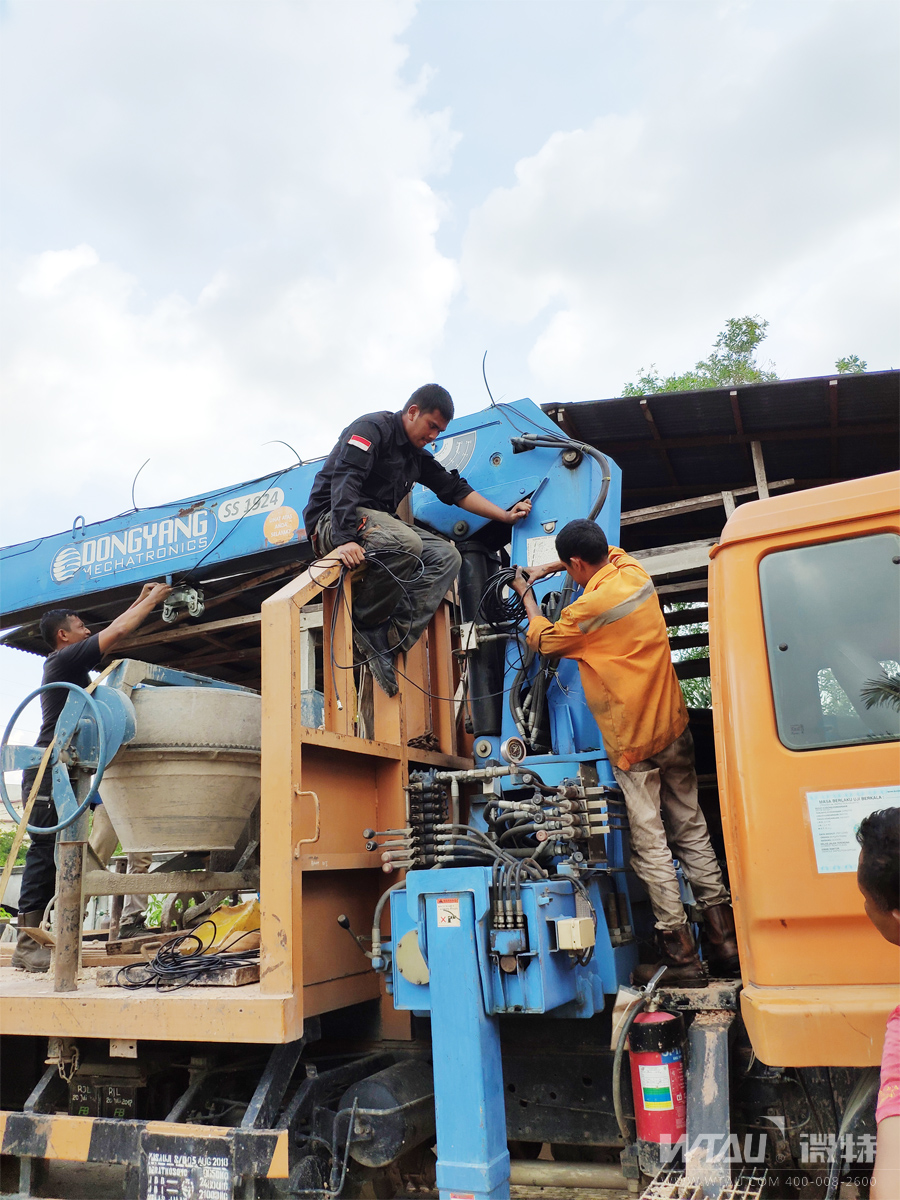 ▲圖為準備進入泗水現(xiàn)場吊車安裝的微特工程師