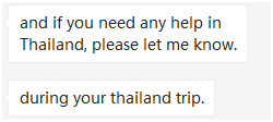 這句話(在你的泰國旅途中,如果需要幫助,請聯(lián)系我)出自很多泰國用戶之口,雖然很簡單,但溫暖著在路上的微特人。在泰國,語言的差異早已不是出行中的大問題,最大的問題是在曼谷以外的區(qū)域,打車難是最大的困擾,UBER/GRAB叫車基本無人應(yīng)答,甚至大街上都看不到一輛出租車,而客戶總是施以援助之手,安排司機(jī)接送。