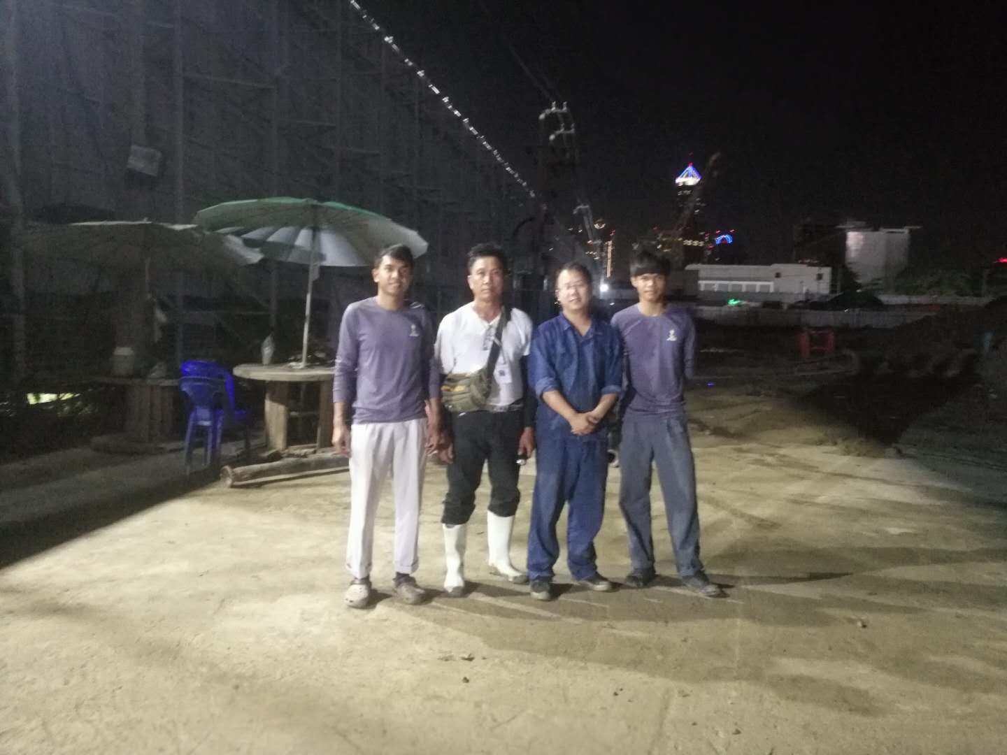 ▲夜晚,微特工程師(右二)與泰方接送人員順利抵達(dá)施工現(xiàn)場
