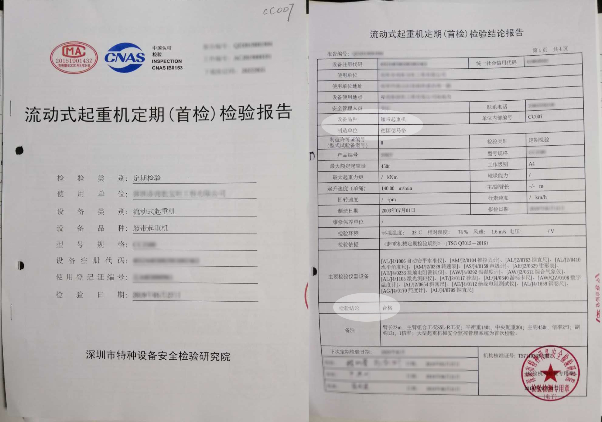 ▲深圳市特檢院頒發(fā)的檢驗報告