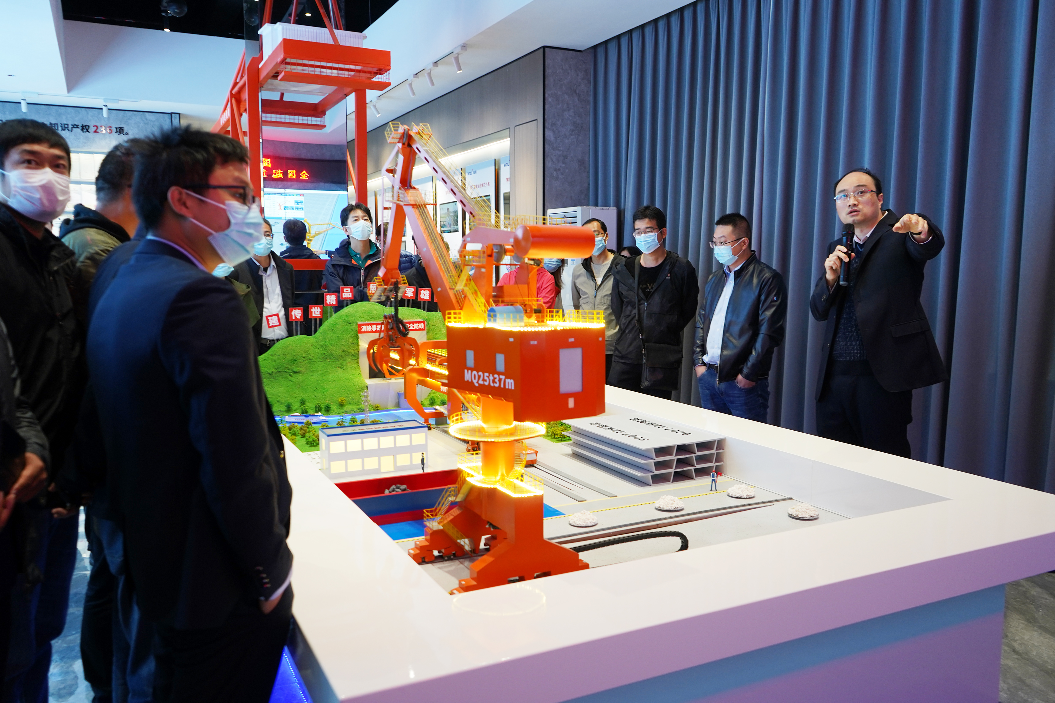△ 參觀沙盤模擬門座機(jī)、架橋機(jī)運(yùn)行
