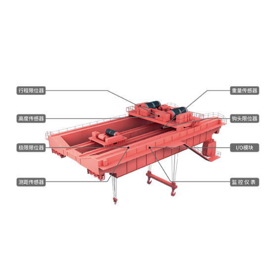 天車安全保護裝置是由傳感器、運算放大器、控制執(zhí)行器和載荷指示計等部分組成,將顯示、控制和報警功能集于一身。當(dāng)起重機起吊物品時,傳感器產(chǎn)生變形,把載荷重量轉(zhuǎn)化為電信號,經(jīng)過運算放大,指示出載荷的數(shù)值。當(dāng)載荷達到額定值的 90%時,發(fā)出預(yù)警信號;當(dāng)載荷超過額定載荷時,切斷起升機構(gòu)的動力源。天車安全保護裝置廣泛用于橋門式起重機。