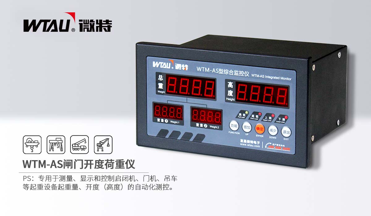 WTM-AS 閘門開度(高度)荷重儀是專用于測量、顯示和控制啟閉機、門機、吊車等起重設(shè)備起重量、開度(高度)的自動化測控儀器。閘門開度(高度)荷重儀又稱為:閘門高度荷重儀、啟閉機綜合監(jiān)測儀、水電站門機開度荷重儀等。