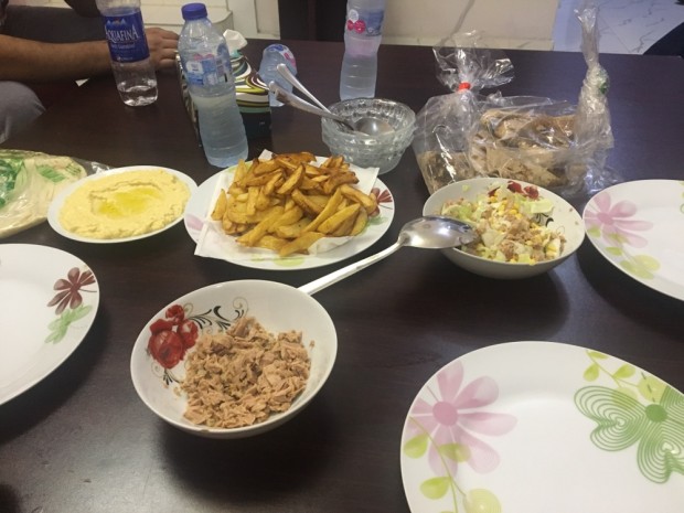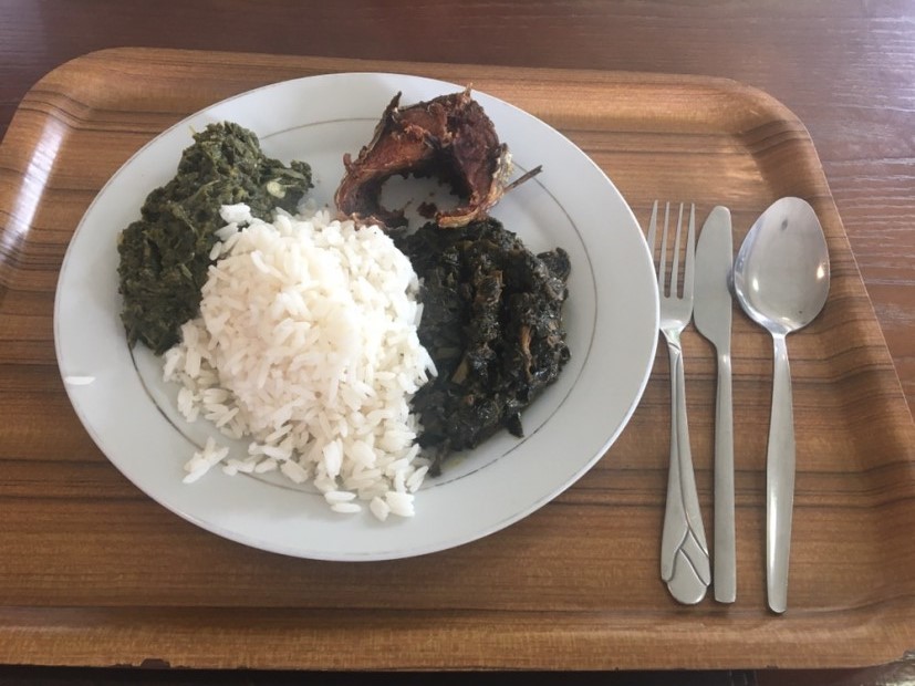在尼日尼亞的第一餐,因為餓了,所以吃到一半才記起拍個照片,對面的同事很厲害,已快速解決了。味道“國內(nèi)的東西還是好吃些”