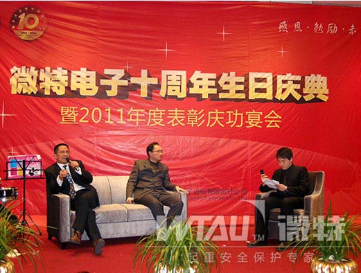 為慶祝微特成立十周年,在會(huì)議前公司組織了一次“我與微特的故事”征文大賽,本次比賽收獲了很多好的文章與故事,通過(guò)幾輪的篩選才評(píng)定出結(jié)果。在這次慶典上揭開(kāi)獲獎(jiǎng)人名單,并頒發(fā)了獎(jiǎng)品?。▓D為頒獎(jiǎng)現(xiàn)場(chǎng))